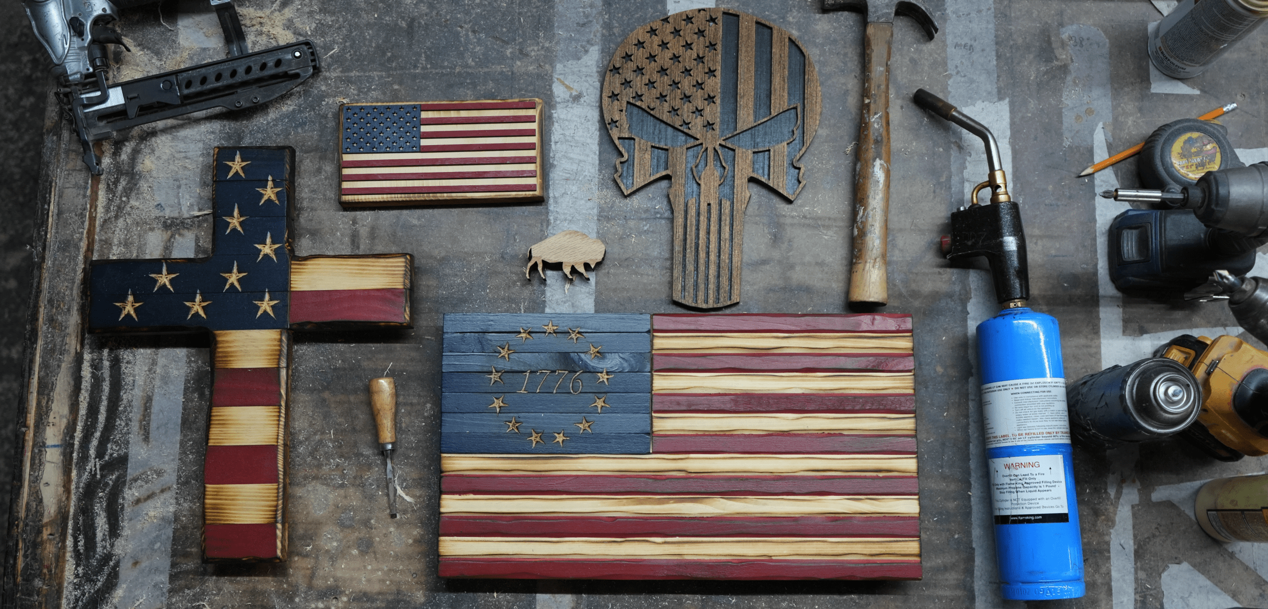 Our flags possess the ability to transform a plain old wall to a beautifully rustic homage to our great country. Our flags command the attention of anyone in any room and can truly be a conversation piece for your space